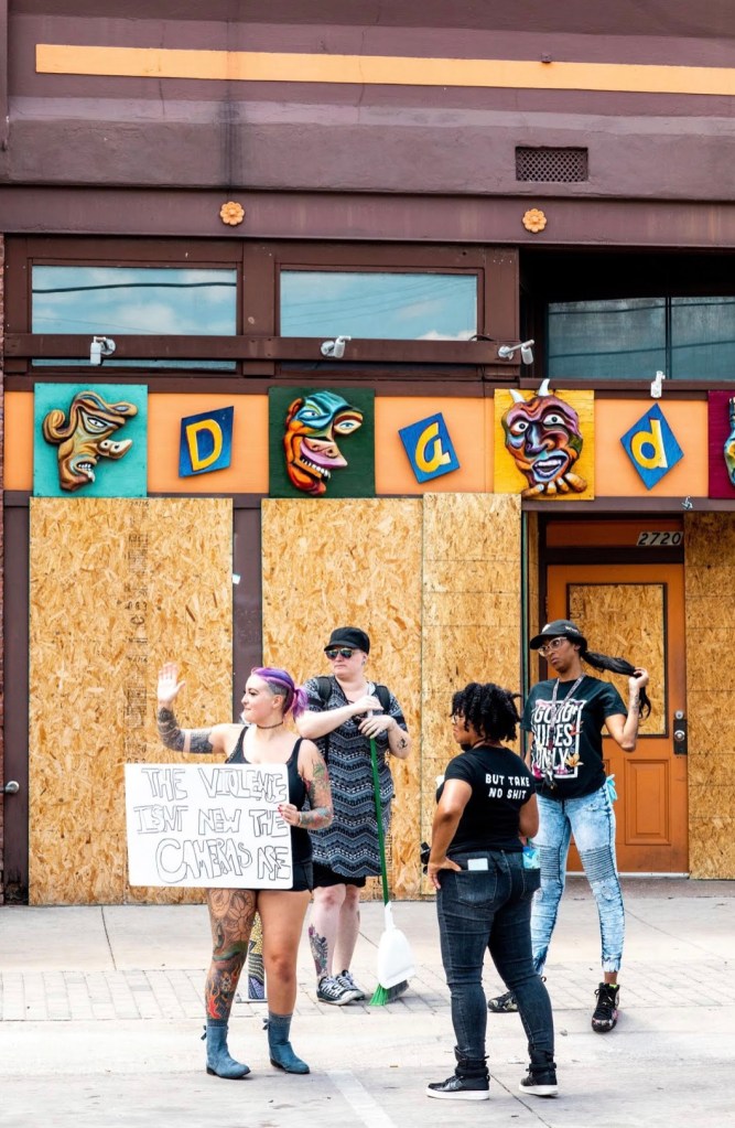 Now, the buzzword is masking, and in Deep Ellum, that’s not just for people, but businesses are mostly masked with boards to prevent rioters from glass-breaking.