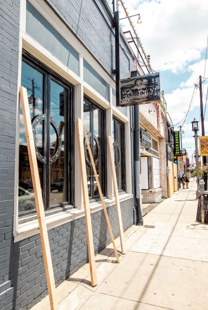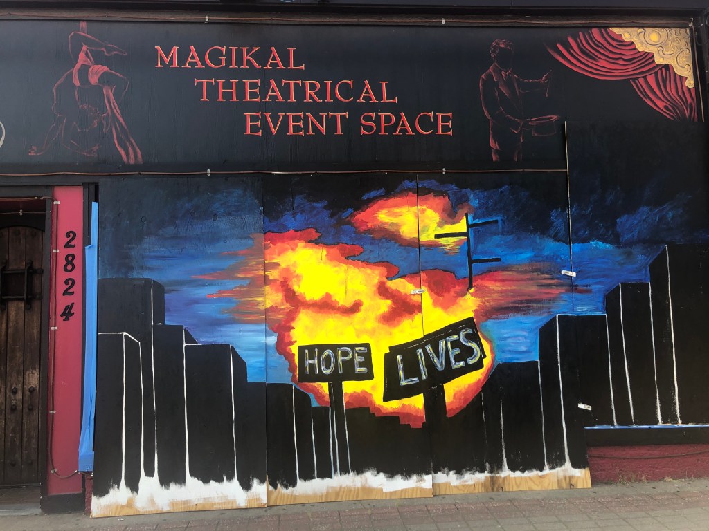 As managers, waiters, bartenders, and musicians work no more, artists went to work on the boarded-up buildings with murals.