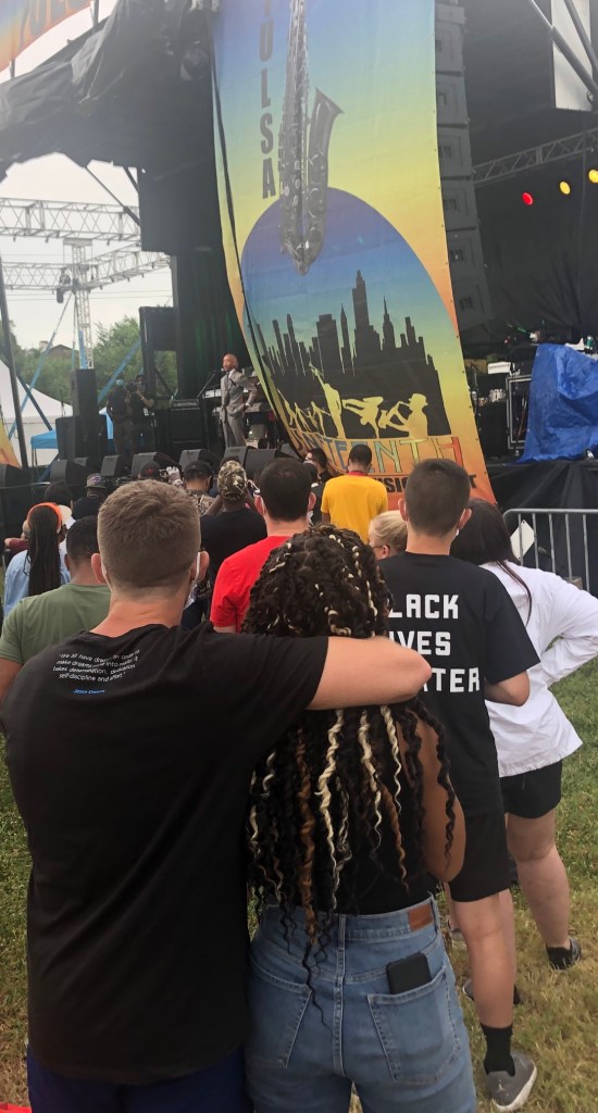 Cornell plays the Ocarina (Cornell features in Steve’s story elsewhere on this blog – titled “Retired? Not Quite”)Cornell looks on as Steve perfects his flutes. Click the link for Steve’s story. https://francisdeen.com/2017/04/22/retired-not-quite/No problem JamaicaZumba Rocks Tulsa (Mary Zumba Spice)Like Whoa, Mary Ann.ZumbaEcstasy – Tulsa Oklahoma. Boy, can she dance? “Has crotch-grabbing in dance ever caused controversy? Yes, it has been a matter of debate, balancing between artistic expression and societal norms. Case in point, choreographed ‘crotch grabs’ by Michael Jackson sparked controversy while also adding to performance intensity and emotional involvement.” TheEssence Music Festival Louisiana Superdome May 21, 2022.Houston, Texas 06-08-2020 (Heading to George Floyd’s Viewing)At George Floyd’s Viewing on 06-08-2020The public @ George Floyd’s ViewingThe Fountain of Praise Church, Houston, to pay respect to George Floyd and bid him farewell. 6-8-2020Dr. Tiffany Crutcher (her masked family behind her) delivers an emotional speech (Juneteenth, Tulsa, 2020)I am demanding a JUSTULSA. (Dr. Tiffany Crutcher of Greenwood)An Interracial Couple Listens to The Rev. Al Sharpton (Juneteenth Tulsa 2020)Juneteenth Tulsa 2020(Sanitized wipes in hand)Black Wall Street Mural on the wall of Interstate Highway 244 Tulsa (MLK Jr Expressway)Juneteenth Tulsa 2020Nameless Security posed for my camera. 2020 Juneteenth TulsaKayla flanked by her daughters. Juneteenth Tulsa 2020A family waiting for the show to begin. Demanding a just Tulsa. Juneteenth 2020Shops at Black Wall Street, Greenwood. Juneteenth Tulsa 2020This Black Lives Matter Mural in Greenwood District (Black Wall Street) Tulsa has been removed by the city.Juneteenth 2020Black Lives Matter Juneteenth, Tulsa Oklahoma, 2020Juneteenth Tulsa 2020Water and Soap Dispenser, Greenwood District Juneteenth 2020Social Distancing and Mask-wearing were enforced as the crowd listened in, some inattentively. (Oklahoma State University in the background)Safety team embedded to encourage people to social distance.The Food line Juneteenth Tulsa 2020Ample parking space was available at the OSU campusJuneteenth Tulsa 2020The Media Juneteenth Tulsa 2020The Young and Vibrant, Juneteenth Tulsa 2020Underneath MLK Jr. Expressway Tulsa, GREENWOOD emblazonedDallas TexasBlack is BeautifulBangs. Her real hair.Barbara Holbrook, Cheryl Wilson, Yulonda Michelle MilerAbout 27 miles south of Tulsa, Oklahoma, is Winchester(Muskogee). “Honk 4 cannabis y’all,” the sign ends. There is a Redneck Corner in Longview, Texas as well. I first noticed this sign in 2017.Essence Music Festival Louisiana Superdome with Leon & TonyDinner was sumptuous with longtime friends Cheryl & Leon WilsonNew Orleans for the Essence Music FestivalThe Guitar is my favorite musical instrumentMiranda Arana, Faculty, University of Oklahoma school of music.