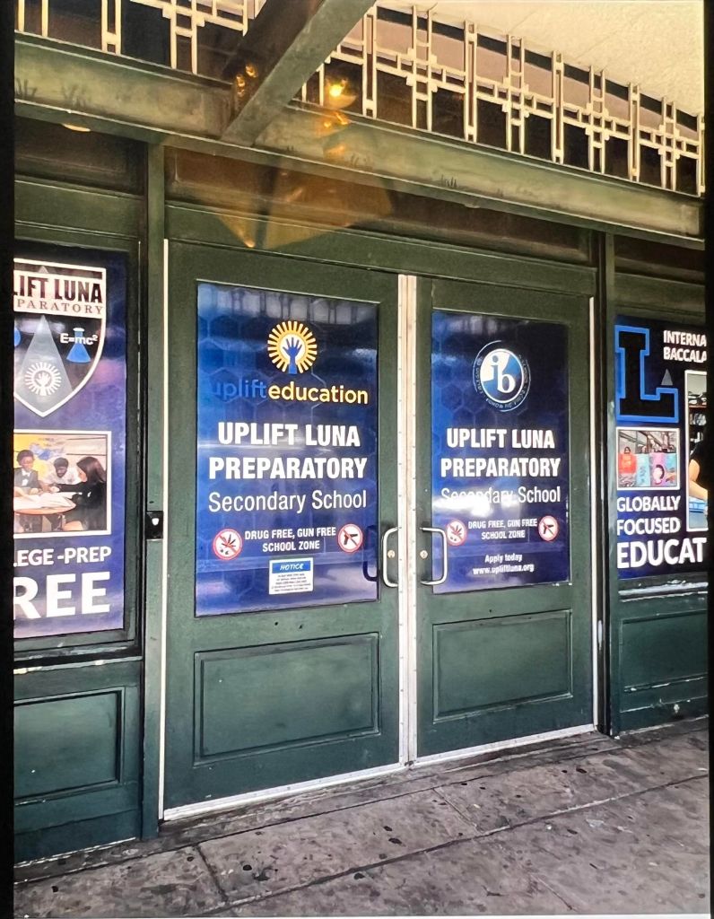 I was teaching in Garland one morning when the vice principal came into my class and said, “Mr. Deen, I heard you are retired but you still got it, we have an opening in Farmers Branch. Would you like to come onboard full time?” I did not give it any thought because I like choosing my scheduleand I had taught at Farmers Branch.A K-9 to sniff for drugs in my classroom. The handler permitted me to take this photo. (South Dallas-name withheld) When the dogs come, they will come up to me asking for fragrance because I always smell good. I will not condone their behavior and turn them down.I never would have guessed there is a school in Deep Ellum until I was assigned there. The problems here are, there is no playground, everyone is locked-in, and as a tourist area, food is expensive. (See the condition of the pavement due to heavy foot-traffic?) Bring your lunch. Two things I can guarantee, the teachers in these schools are good and security is tight. When I do not have class, I enjoyed watching them teach. This is not the entrance.